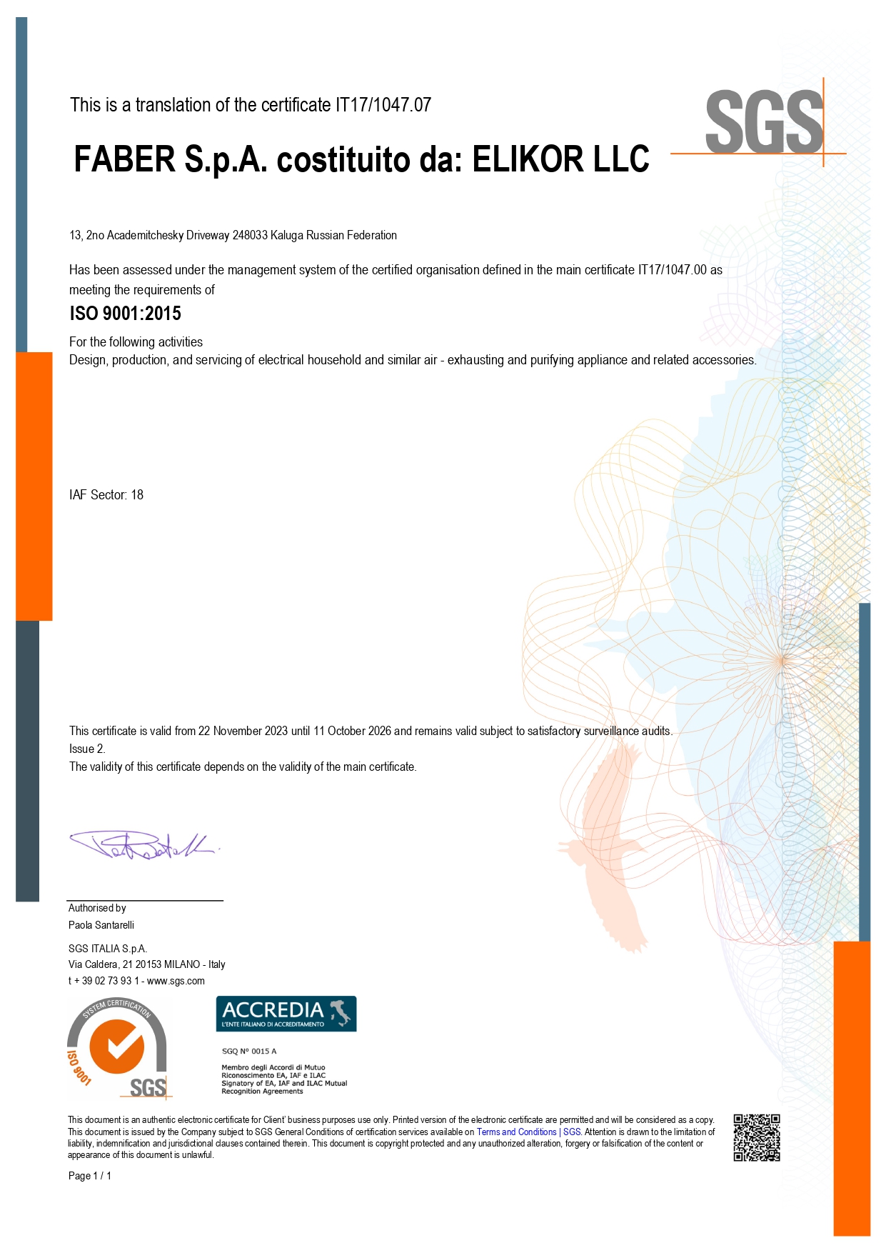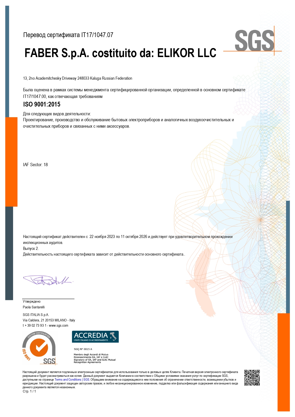 Перевод сертификата IT17/1047.07 от 22.11.2023